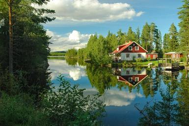 Keywords: house water lake reflection sweden