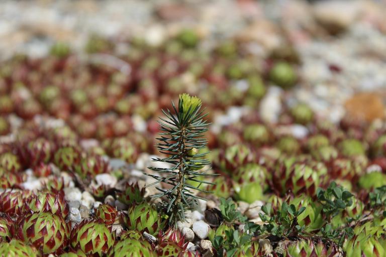 Keywords: houseleek fir branch stone garden green plant nature close flora garden spring