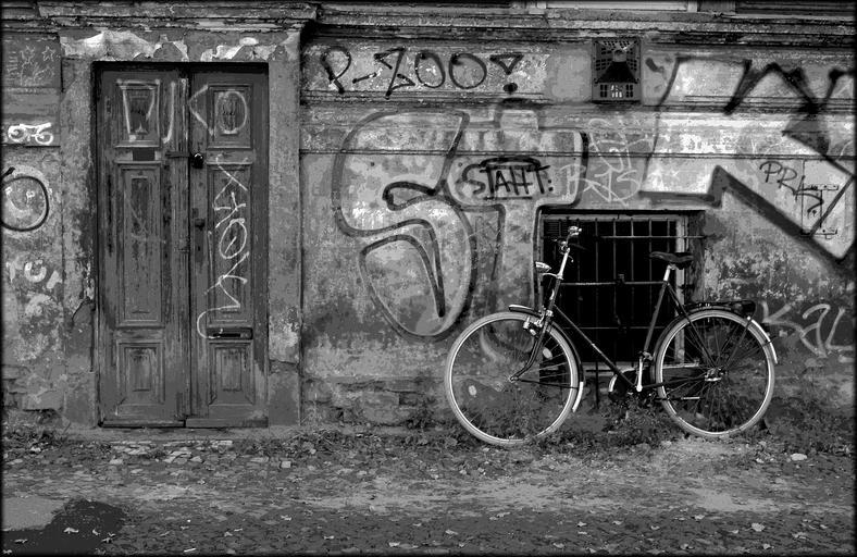 | Keywords: housewife architecture building input bike hauswand masonry berlin door graffity wall painting ailing dilapidated old building old houses break up home decay run down old house lapsed prenzlauerberg capital still life still ruined house facade black and white wall bike leaning on district |
