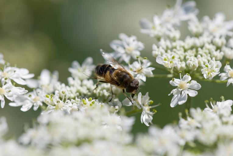 Keywords: hoverfly flower fly blossom summer nature insect close up white
