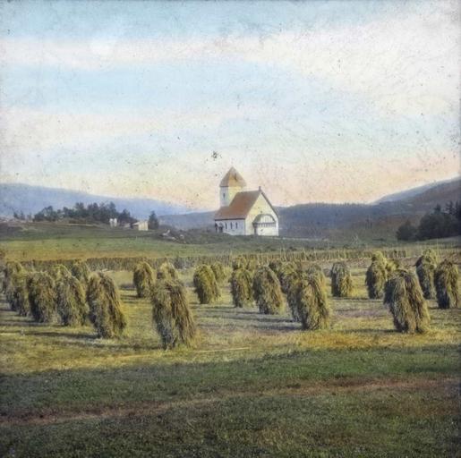 | Keywords: lysbilder landbruk husdyrhold for høy jordbruk redskaper hersjer arkitektur bygninger kirker outdoor landscape field grassland Håndkolorert dias. En kirke sees bak et jorde fullt av hersjer med høy. Håndkolorert dias. En kirke sees bak et jorde fullt av hersjer med høy. |