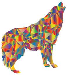 Keywords: howling wolf animal predator canis lupus low poly polygon triangles colorful prismatic chromatic rainbow abstract geometric art
