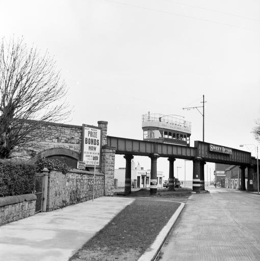 Keywords: tram elevated bridge elevatedbridge bridge advertising prize bonds prizebonds sweet afton sweetafton howth, co. dublin howthcodublin howth dublin 1959 1950s james p. o'dea jamespodea foot-paths footpaths harbour-town harbourtown british-architecture britisharchitecture electric-trams electrictrams findlater's findlaters clock gem the gem thegem national library of ireland nationallibraryofireland o'dea photographic collection odeaphotographiccollection blackandwhite monochrome outdoor road vehicle train locomotive building building structure infrastructure architecture black and white A tram crossing over the elevated road bridge at Howth, Co. Dublin. Thanks to A. P. Luckwill we have an exact location for this photo as that bridge is long gone, and he also said: "Parts of the original Howth Head tramway trackbed are still accessible on foot, from the top down, the path ends right at the point where this bridge once stood!" Date: March 1959 NLI Ref.: ODEA10/2 A tram crossing over the elevated road bridge at Howth, Co. Dublin. Thanks to A. P. Luckwill we have an exact location for this photo as that bridge is long gone, and he also said: "Parts of the original Howth Head tramway trackbed are still accessible on foot, from the top down, the path ends right at the point where this bridge once stood!" Date: March 1959 NLI Ref.: ODEA10/2