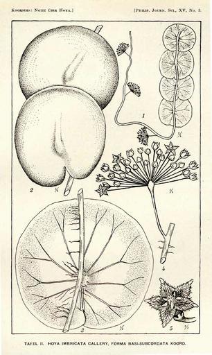 Keywords: Hoya imbricata01.jpg en Hoya imbricata Decne 1919 http //www botanicus org/page/699485 Philippine Journal of Science vol15 1919 Sijfert Hendrik Koorders 1863-1919 PD-Art Uploaded with UploadWizard Hoya imbricata