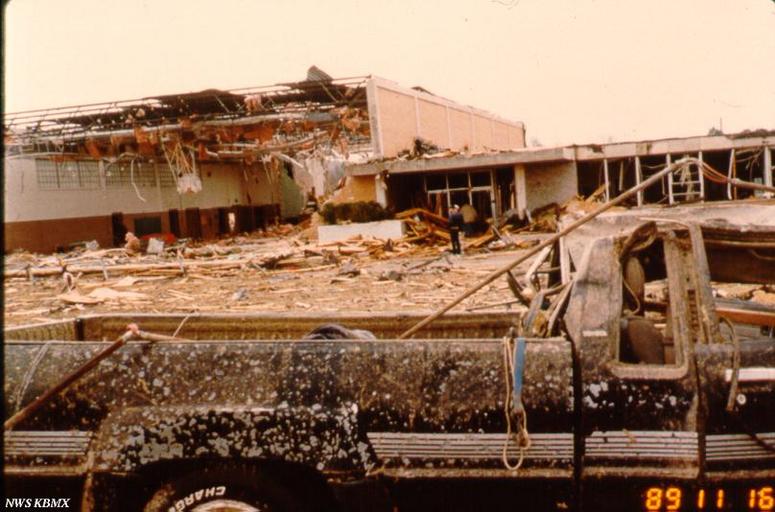 | Keywords: Hsv damage 05.jpg en Holy Spirit Catholic Church suffered severe damage from the November 15 1989 tornado to strike Huntsville Alabama photographed by NWS Birmingham during their storm survey 1989-11-16 http //www srh noaa gov/images/bmx/significant_events/1989/11_15/graphics/ C S;O D National Weather Service Birmingham Alabama office other versions PD-USGov 1989 Huntsville Tornado |
