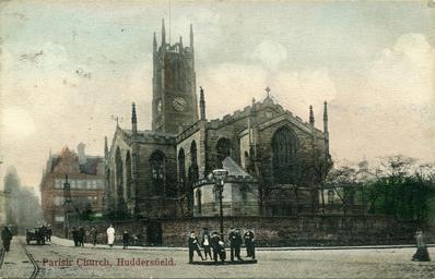 | Keywords: Huddersfield Parish Church 006.jpg en Tinted 1909 postcard of Huddersfield Parish Church - Kirkgate Huddersfield West Yorkshire England Postcard addressed to Harry William Tapp in Hamburg Germany Postmarked 13 November 1909 My own scan of original postcard in my possession Derwent series Individual photographer unknown and anonymous Records archives and postcard books have been searched for author and any copyright claim but none found PD-old-70-1923 Postcards of St Peter's Church Huddersfield Archive images of Church of St Peter Huddersfield |