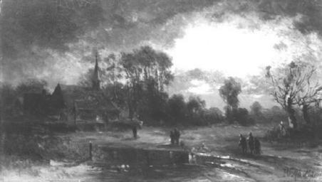 | Keywords: Hugo Ullik 1838-1881 - Nocni krajina s kostelem.jpg Artwork Noční krajina s kostelem olej rám výška - 32 00 cm šířka - 46 00 cm; dílo výška - 20 00 cm šířka - 34 00 cm Praha Národni Galerie 1876 Creator Hugo Ullik 1838-1881 Other versions PD-old-100 Collections of the Národní galerie v Praze |