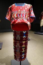 | Keywords: Huipil, skirt, belt, mid 20th century, Mam Maya, mid 20th century, huipil and skirt from Colotenango, belt from Guatemala, cotton - Textile Museum of Canada - DSC01059.JPG en Exhibit in the Textile Museum of Canada 55 Centre Avenue Toronto Ontario Canada Photography was permitted in the museum without restriction 2013-07-04 14 34 35 own Daderot cc-zero Maya textiles in the Textile Museum of Canada Uploaded with UploadWizard | ||||