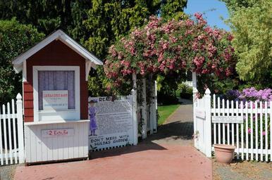 | Keywords: outdoor CC0 waiver: To the extent possible under law, I waive all copyright and related or neighboring rights to this work. CC0 waiver: To the extent possible under law, I waive all copyright and related or neighboring rights to this work. Hulda Klager Lilac Gardens entrance.jpg 75001847 en Entrance gate to Hulda Klager Lilac Gardens a botanical garden and national historic site in Woodland Washington The sign on the lower left reads 2 Entry Fee - CHILDREN UNDER 12 FREE The sign on the upper left reads GATEKEEPER IS OUT - PLEASE PUT 2 IN BOX INSIDE GATE AT RT The two signs on the right read NO PETS and THE FRAGRANCE IS LOVELY THIS TIME OF YEAR SO SMOKERS PLEASE-LEAVE YOUR BUTTS HERE The sign in the center reads as follows <pre> READ THIS Please <-- This is Eartha Riche our head gardener She is very strong because she works so hard She is also grumpy for the same reason The only time we see her smile is when she catches someone breaking the rules We suspect she uses rule breakers to fertilize the garden but we're afraid to ask She is always lurking in the bushes hoping to catch rule breakers so please read and follow the rules We just hate to lose our guests 1 No running or climbing trees or shrubs No playing in the flower beds This is not a playground 2 Stay on the paths when you can Eartha does not take kindly to trampled plants 3 No smoking or alchohol allowed Eartha will not tolerate either of these 4 Do not pick leaves flowers or branches This REALLY ticks Eartha off 5 No pets no matter how cute or well behaved You don't want to know what Eartha does to pets 6 Be kind to our workers Nearly all are unpaid volunteers Friends or members of the Hulda Klager Lilac Society 7 The gardens are open daily from 10 A M to 4 P M during Lilac Days You had better leave then You don't want to meet Eartha after the gates close Eartha says DON'T MESS WITH HULDA'S GARDEN </pre> Own Dcoetzee 45 53 50 135999 N 122 45 9 15 W alt 23_source exif_heading cc-zero Hulda Klager Lilac Gardens CC0 waiver: To the extent possible under law, I waive all copyright and related or neighboring rights to this work. |