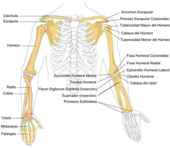 | Keywords: Human arm bones diagram-es.svg The humerus is the upper arm bone It joins with the scapula above at the shoulder joint or glenohumeral joint and with the ulna and radius below at the elbow joint Notice When the arm is spun so that the thumb point to the outside of the body meaning the palm of the hand looks forward then it is said the hand is supinated But when the thumb remains in the inside and the palm looks backwards then it is said that the hand is pronated In this diagram one hands is pronated and the other supinated in order to show how the ulna and the radius cross while doing this movement Human_arm_bones_diagram svg 2009-06-29 00 05 UTC Human_arm_bones_diagram svg LadyofHats Mariana Ruiz Villarreal derivative work Addicted04 <span class signature-talk >talk</span> LadyofHats Other versions/Human arm bones diagram Translation Addicted04 Human_arm_bones_diagram svg Diagrams in Spanish Bones of the human arm Clavicula Scapula Humerus Radius bone |