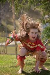 Keywords: human child girl blond long hair indian indian girl play in action in motion out nature
