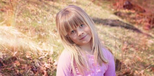 Keywords: human child girl face blond long hair out nature