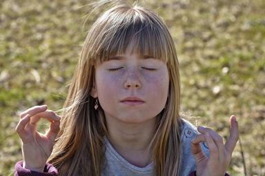 Keywords: human child girl face blond long hair eyes closed meditation meditate silent rest relaxation portrait