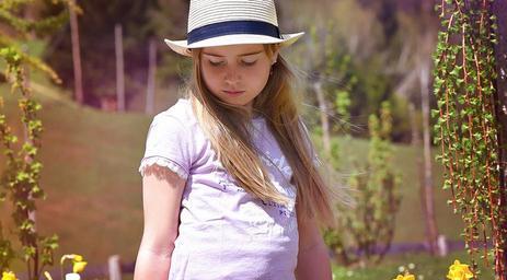 Keywords: human child girl face view hat long hair portrait out nature