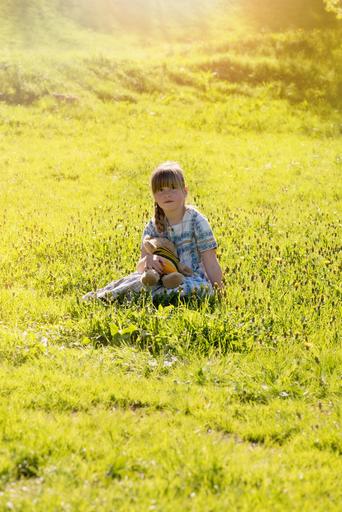 Keywords: human child girl sitting teddy teddy bear reported nature out