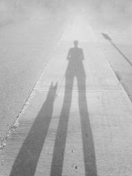 Keywords: human dog sidewalk black white