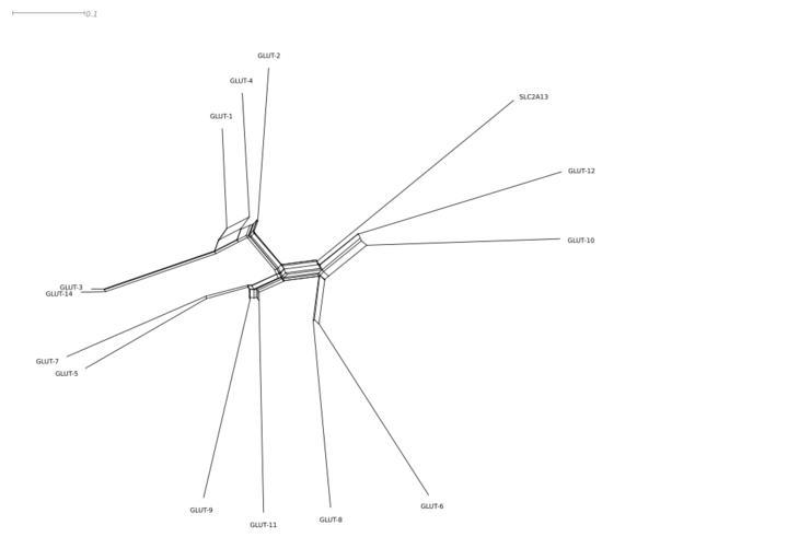 | Keywords: Human glucose transporters SN.svg en Phylogenetic tree actually a split network equal-angle with equal-daylight and box-opening using Muscle-aligned data from UniProt human glucose transporter sequences cite journal Edgar RC MUSCLE multiple sequence alignment with high accuracy and high throughput Nucleic Acids Res 32 5 1792 “7 2004 15034147 390337 10 1093/nar/gkh340 cite journal Huson DH Bryant D Application of phylogenetic networks in evolutionary studies Mol Biol Evol 23 2 254 “67 2006 February 16221896 10 1093/molbev/msj030 http //mbe oxfordjournals org/cgi/reprint/msj030 ijkey GvcBFw4QPIORzUE keytype ref pdf Own Ayacop 2010-01-27 Split networks |