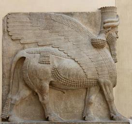 | Keywords: Human headed winged bull Louvre AO19859.jpg Artwork Human-headed winged bull Relief from the gate N°3 Palace of Sargon II at Khorsabad Dur Sharrukin 713 “706 BCE H 4 28 m 14 ft ½ in W 4 21 m 13 ft 9 ½ in Museum Louvre Department of Oriental Antiquities Richelieu ground floor room 4 object history credit line Excavations of Paul-Émile Botta 1843 “1844 accession number AO 19859 Jastrow 2006 other versions Taureau androcĂ©phale ailĂ© Bas-relief ornant la porte n°3 de Dur-Sharrukin le palais de Sargon II Khorsabad Iraq 713-706 av J -C Near Eastern Antiquities in the Louvre - Room 4 - Shedu profile 01 Assyrian art from Dur-Sharrukin Man-headed bulls |