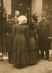 | Keywords: suffrage the women's library thewomenslibrary women history politics hires monochrome 7JCC/O/02/008 Photograph, printed, paper, monochrome, suffragettes Daisy Solomon and Elspeth McClellan with a post boy, police and an official outside no.10 Downing Street, attempting to get themselves delivered as letters; printed inscription on reverse 'Copyright: World's Graphic Press Limited, 36-38 Whitefriars Street, Fleet Street, London. Please Acknowledge' 7JCC/O/02/008 Photograph, printed, paper, monochrome, suffragettes Daisy Solomon and Elspeth McClellan with a post boy, police and an official outside no.10 Downing Street, attempting to get themselves delivered as letters; printed inscription on reverse 'Copyright: World's Graphic Press Limited, 36-38 Whitefriars Street, Fleet Street, London. Please Acknowledge' |