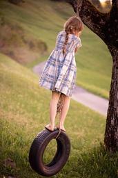Keywords: human person child girl blond long hair swing tire swing gymnastics play out nature