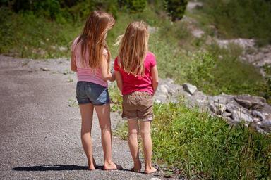 Keywords: human personal children girl pair together out nature friends