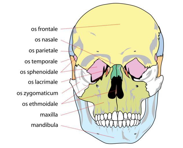 | Keywords: Human skull front bones.svg Assessments 5 2007 1 the adult skull is normally made up of 22 bones Except for the mandible all of the bones of the skull are joined together by sutures semi-rigid articulations formed by bony ossification the presence of Sharpey's fibres permitting a little flexibility Le crâne humain adulte est constitué de 22 os A l'exeption de la mandibule tous les os du crâne sont reliés entre eux par des sutures articulations semi-rigides formées par ossification La présence des fibres de Sharpey permettent une certaine flexibilité O crânio humano adulto é constituÃdo por 22 ossos à excepção da mandÃbula todos os ossos do crânio encontram-se ligados por suturas articulações semi-rÃgidas formadas por ossificação com a presença de fibras de Sharpey permitindo alguma flexibilidade made it myself 2007-01-06 LadyofHats Mariana Ruiz Villarreal LadyofHats Human skull front bones ku svg Human skull front bones uk svg <gallery> Image Human skull front complete svg front complete Image Human skull front bones numbered svg numbered SVG version </gallery> SVG files on human skull Featured pictures on Wikimedia Commons - vector Frontal bones Temporal bone Zygomatic bones Nasal bones Maxilla Mandible |