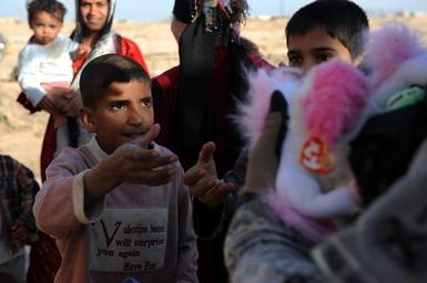 | Keywords: Humanitarian Aid DVIDS256683.jpg en A young child holds out his hand for a stuffed animal as U S Soldiers from 2nd Platoon Charlie Company 1st Brigade 37th Armor Battalion 1st Brigade Combat Team 1st Armored Division visit Reshedai Iraq Feb 25 U S Soldiers visited the village to deliver three new generators and pass out a few goodies to children 2010-02-25 Petty Officer 1st Class matthew leistikow https //www dvidshub net/image/256683 100225-N-+++++-307 2010-03-04 02 41 HAWIJA IQ PD-USGov-Military-Navy 1st Armored Division United States Images from DoD uploaded by Fæ |