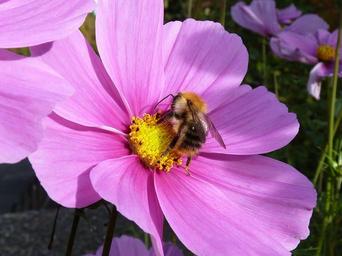 Keywords: hummel flower blossom bloom pink plant nature insect pollen spring bee pollination close collect pollen nectar sprinkle