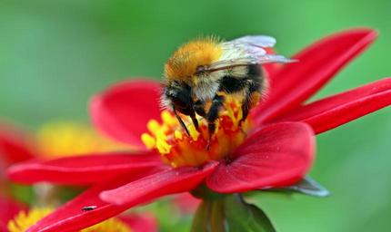 Keywords: hummel meadow hummel bombus pratorum insect fly collect nectar nectar search blossom bloom dahlia mignon-dahlia red animal nature