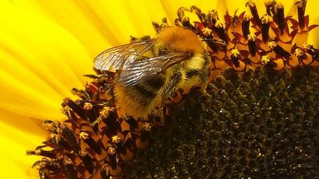 Keywords: hummel sun flower insect pollination blossom bloom yellow flower pollen
