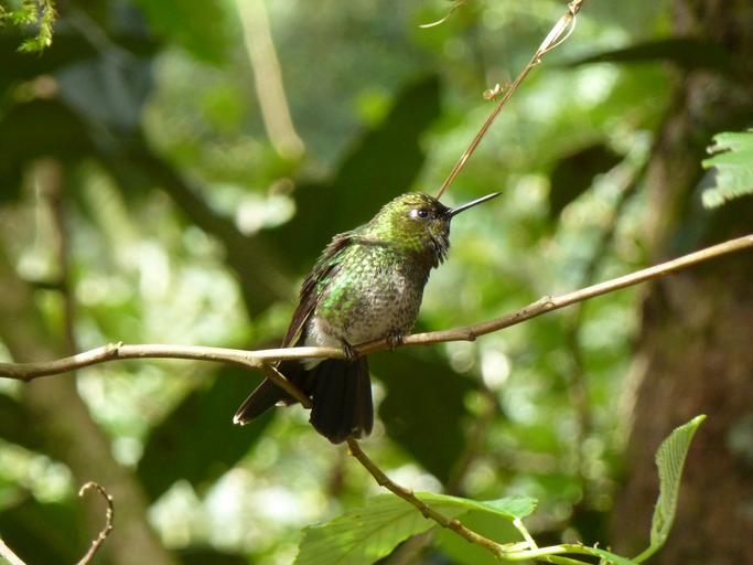 Keywords: hummingbird green feathers bird beak perch andes cloudforest equador