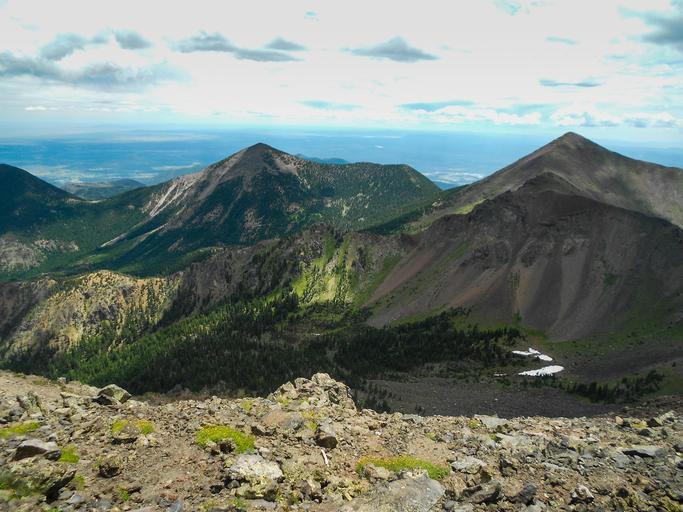 | Keywords: arizona brent johnston brentjohnston coconino national forest coconinonationalforest flagstaff flagstaff ranger district flagstaffrangerdistrict humphreys trail humphreystrail humphreys trail no. 51 humphreystrailno51 kachina peaks wilderness kachinapeakswilderness national forest nationalforest san francisco mountain sanfranciscomountain san francisco peaks sanfranciscopeaks alpine tundra alpinetundra cirque composite volcano compositevolcano forest glacial glacial cirque glacialcirque glacial moraine glacialmoraine glacial ridges glacialridges glacier hike hiking moraine outdoors strato volcano stratovolcano trail vista volcano wilderness united states unitedstates outdoor landscape mountain hill mountainside View of glacial cirque, ridges, and moraine in the Inner Basin of the San Francisco Peaks. View into the interior of the Inner Basin along Humphreys Trail No. 50. The trail starts at the Arizona Snowbowl and winds steeply up to Humphreys Peak, the highest point in Arizona at 12,633 feet. Humphreys Peak is one of several named peaks in the San Francisco Peaks (aka San Francisco Mountain or simply "the Peaks"). The mountain is an extinct stratovolcano. The 5+ mile hike ascends over an elevation gain of over 3,000 feet, and generally take 6 to 8 hours to complete. Brent Johnston of the Coconino National Forest took this photo on a weekend family hike, July 24, 2015. Credit: U.S. Forest Service, Coconino National Forest. For more information about this trail, see the Humphreys Trail No. 51 trail description on the Coconino National Forest website. View of glacial cirque, ridges, and moraine in the Inner Basin of the San Francisco Peaks. View into the interior of the Inner Basin along Humphreys Trail No. 50. The trail starts at the Arizona Snowbowl and winds steeply up to Humphreys Peak, the highest point in Arizona at 12,633 feet. Humphreys Peak is one of several named peaks in the San Francisco Peaks (aka San Francisco Mountain or simply "the Peaks"). The mountain is an extinct stratovolcano. The 5+ mile hike ascends over an elevation gain of over 3,000 feet, and generally take 6 to 8 hours to complete. Brent Johnston of the Coconino National Forest took this photo on a weekend family hike, July 24, 2015. Credit: U.S. Forest Service, Coconino National Forest. For more information about this trail, see the Humphreys Trail No. 51 trail description on the Coconino National Forest website. |
