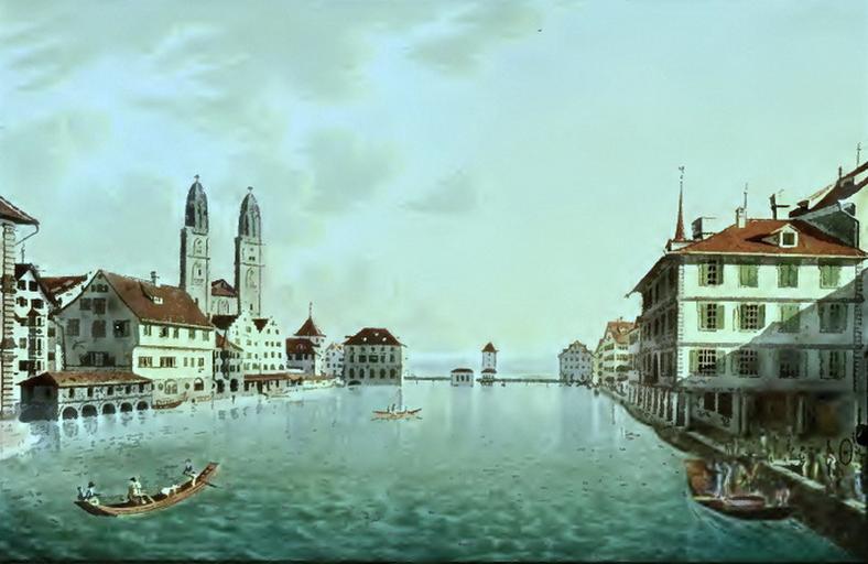 | Keywords: Hundert Jahre Bilder aus der Stadt Zürich - Zürich vom Hotel Schwert aus 1835.jpg Blick von der Rathausbrücke limmat-aufwärts links die Ecke des Rathauses dann das niedrige Gebäude der Ankenwage und der Rüden zwischen Grossmünster und Helmhaus der Hottiugerturm hinter der Mitte der oberen Brücke der Wellenberg rechts das Kornhaus Kaufhaus Hundert Jahre Bilder aus der Geschichte der Stadt Zürich in der Zeit von 1814 “1914 Band 1 Zürich 1914 1835 S Zurlinden upload by Roland zh thumb PD-old Third party files uploaded by User Roland zh Zürich in art 1835 in Switzerland Water transport on the Limmat river Historical images of the Limmat river Weidling Zunfthaus zum Rüden Historical images of Grossmünster Historical images of Kornhaus Zürich Historical images of Rathaus Zürich |