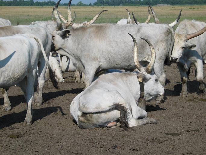 Keywords: Hungarian Grey Cattle12.jpg Hungarian Grey cows in Hortobágy National Park Hungary 2006-07-06 own assumed Nl74 Hungarian Grey cattle