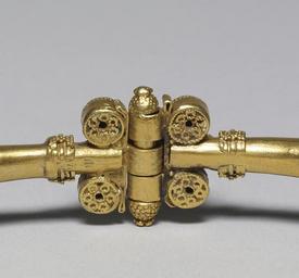 | Keywords: Hunnish - Bracelet - Walters 571082 - Detail Back.jpg This superb tubular bracelet closes with a clasp decorated with granulation--a hallmark of Hunnish craftsmanship--around a central round garnet The backs of the hemispheres are decorated with a filigree While Hunnish women also wore jewelry the large size of this bracelet suggests it would have been worn by a man high on the arm early Other date century 5 Early Medieval gold garnet cm 2 3 11 3 10 4 accession number 57 1082 23641 Henri Daguerre Paris date and mode of acquisition unknown Henry Walters city Baltimore Walters Art Museum Henry Walters Acquired by Henry Walters 1928 Early Christian and Byzantine Art Baltimore Museum of Art Baltimore 1947 Romans and Barbarians Museum of Fine Arts Boston Boston 1976-1977 Jewelry - Ancient to Modern The Walters Art Gallery Baltimore 1979-1980 Objects of Adornment Five Thousand Years of Jewelry from the Walters Art Gallery Baltimore Cooper-Hewitt National Design Museum New York; Chrysler Museum of Art Norfolk; Carnegie Museum of Art Pittsburgh; San Antonio Museum of Art San Antonio; Philbrook Museum of Art Tulsa; Honolulu Academy of Arts Honolulu; New Orleans Museum of Art New Orleans; Milwaukee Art Museum Milwaukee; Minneapolis Institute of Arts Minneapolis; Toledo Museum of Art Toledo; The John and Mable Ringling Museum of Art Sarasota 1984-1987 Jewelry from the Walters Art Museum and the Zucker Family Collection The Walters Art Gallery Baltimore 1987 place of origin southwest Russia Walters Art Museum license Medieval metalwork in the Walters Art Museum Jewellery in the Walters Art Museum Hunnic jewellery Media contributed by the Walters Art Museum needs category review |
