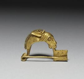 | Keywords: Hunnish - Horse-Head Fibula - Walters 57482 - Back.jpg This fibula is shaped like the head and neck of a horse Dots suggest the texture of the coat and looped filigree is used for the mane While the form of the pin was inspired by Roman examples the subject matter the horse relects the importance of these animals to the Huns early Other date century 5 Early Medieval gold cm 2 6 3 7 0 9 accession number 57 482 37476 Joseph Brummer New York date and mode of acquisition unknown Henry Walters city Baltimore Walters Art Museum 1931 by bequest Acquired by Henry Walters 1927 Early Christian and Byzantine Art Baltimore Museum of Art Baltimore 1947 Jewelry - Ancient to Modern The Walters Art Gallery Baltimore 1979-1980 The Allure of Bronze The Walters Art Gallery Baltimore 1995 place of origin southwest Russia Walters Art Museum license Medieval metalwork in the Walters Art Museum Jewellery in the Walters Art Museum Hunnic jewellery Media contributed by the Walters Art Museum needs category review |