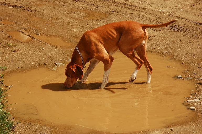 Keywords: hunting dog puddle animal pet water pointer red brown