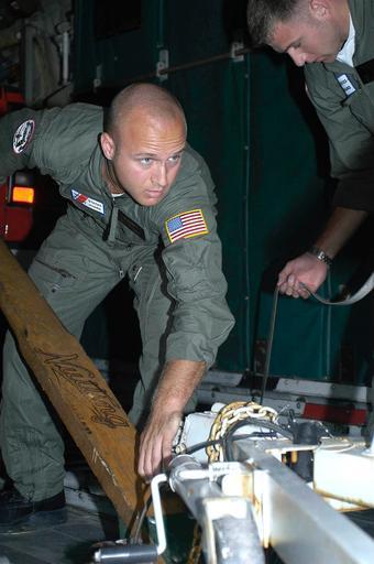 | Keywords: HURRICANE ISABEL DVIDS1074998.jpg en HATTERAS N C Sept 18 2003 -Petty officer Matt Overmyer station at Coast Guard Air Station Clearwater Fla helps push disaster response equipment out of the cargo area of a Coast Guard C-130 aircraft in Elizabeth City N C The Clearwater crew helped transport essential disaster response teams and their equipment to heavily hit regions of North Carolina immediately after Hurricane Isabel tore through the Outer Banks Sept 18 2003 The C-130 can carry 51 000 pounds of cargo or rescue or oil pollution control equipment Operated by a crew of seven the HC-130 can airdrop life rafts or dewatering pumps or dispersant for oil pollution control USCG photo by PA2 Dana Warr 2003-09-18 https //www dvidshub net/image/1074998 1074998 2013-12-11 16 47 HATTERAS NC US PD-USGov Coast Guard Air Station Clearwater Images from DoD uploaded by Fæ |