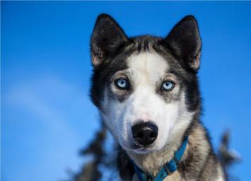 Keywords: husky dog canine portrait sled dog looking animal domestic pet working head eyes outdoors close up alaska usa