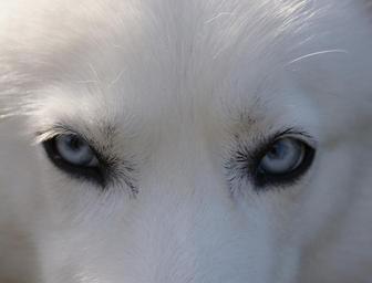 Keywords: husky eyes blue dog siberian doggy arctic polar looking animal pet white fur stare