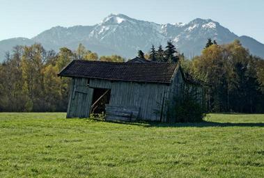 Keywords: hut barn old nature field meadow field barn log cabin wood scheuer decay romance break up landscape bavaria chiemgau romantic dilapidated