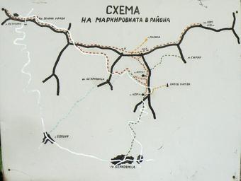 Keywords: Hut-kom-touristic-map.JPG Схема на ма ш утите в айона на хижа Ком нова Ста а планина Бълга ия Diagram of the touristic routes in the region of hut Kom Balkan Bulgaria Own 2007-08-25 Vassia Atanassova - Spiritia Maps of Stara planina Hiking maps of Bulgaria Photographs of maps