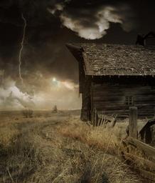 Keywords: hut thunderstorm sky clouds flash lonely home apocalypse building ruin lapsed old leave lonely house atmosphere silent old house weather broken idyll decay run down wide meadow away traces vision rest view horizon