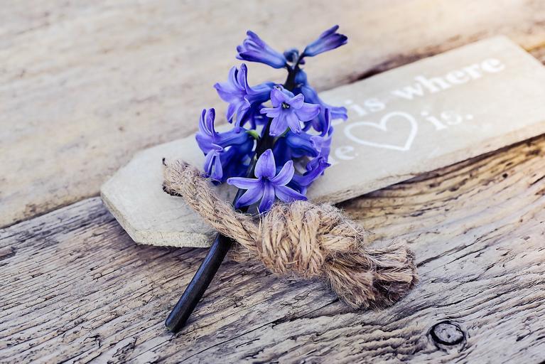 Keywords: hyacinth flower blossom bloom fragrant flower blue wood shield wooden sign close