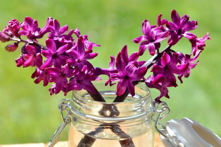 Keywords: hyacinth flower flowers violet glass decorative glass vase