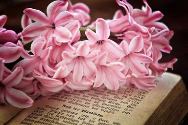 Keywords: hyacinth flowers pink fragrant flower spring flower fragrant book prayer book old used antique vintage close
