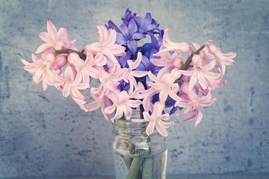 Keywords: hyacinth flowers pink blue spring flower fragrant flower schnittblume vase glass deco close