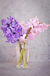 Keywords: hyacinth pink blue flower pink flower blue flower fragrant flower flowers schnittblume spring flower vase glass deco decoration spring still life close flowers photography fragrant scented plant pink hyacinth hyacinthus orientalis pink flowers blue flowers