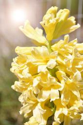 Keywords: hyacinth yellow flowers garden spring flower early bloomer spring light sunlight close