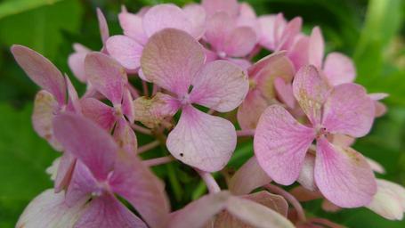 Keywords: hydrangea blossom bloom inflorescence pink petals green garden nature plant close fill